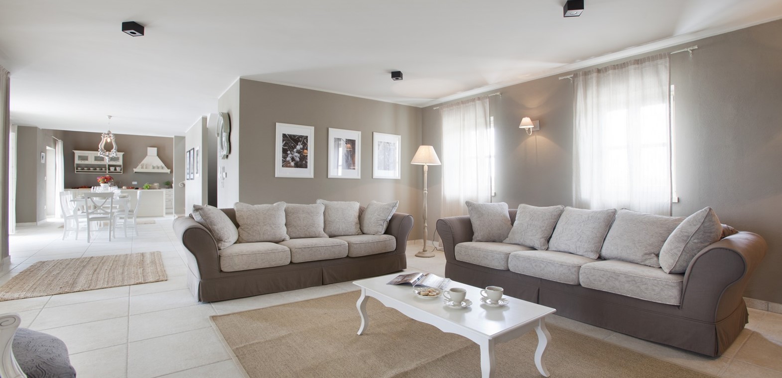 Villa Sara has four en-suite bedrooms equipped with queen-size beds. There is also a completely furnished suite of 80 m2 with its separate entrance. From the spacious living area that features an open fireplace you step onto the covered stone-paved terrace offering the view of nearby vineyards and the sea in the distance. The terrace continues onto a spacious lawn and a stone barbecue. The villa has a large private parking area.